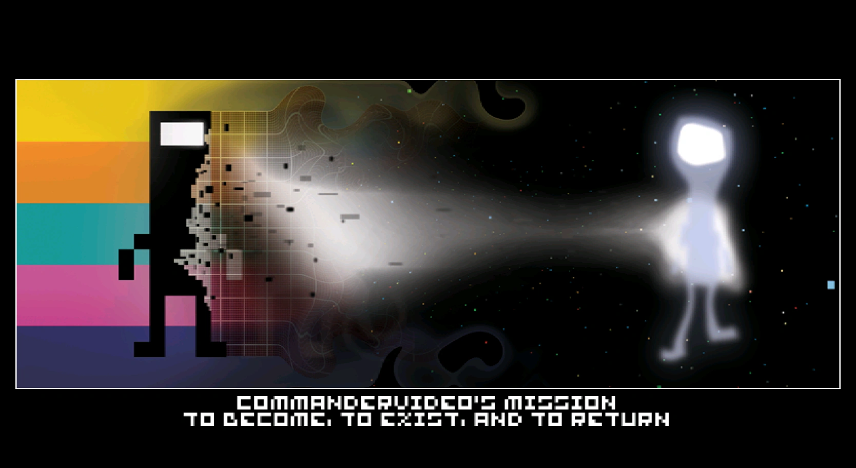 CommanderVideo's original story is about Birth to Death as he follows three missions "TO BECOME", "TO EXIST", and "TO RETURN".