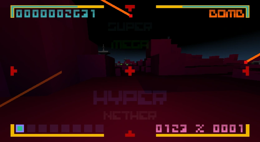 The music is a lot more intense, yet slower, and sadder than DISCOVERY, probably reflecting CommanderVideo's struggle to fit into the world he was born into, and thus to an interpretary extent the player trying to beat this Level.
